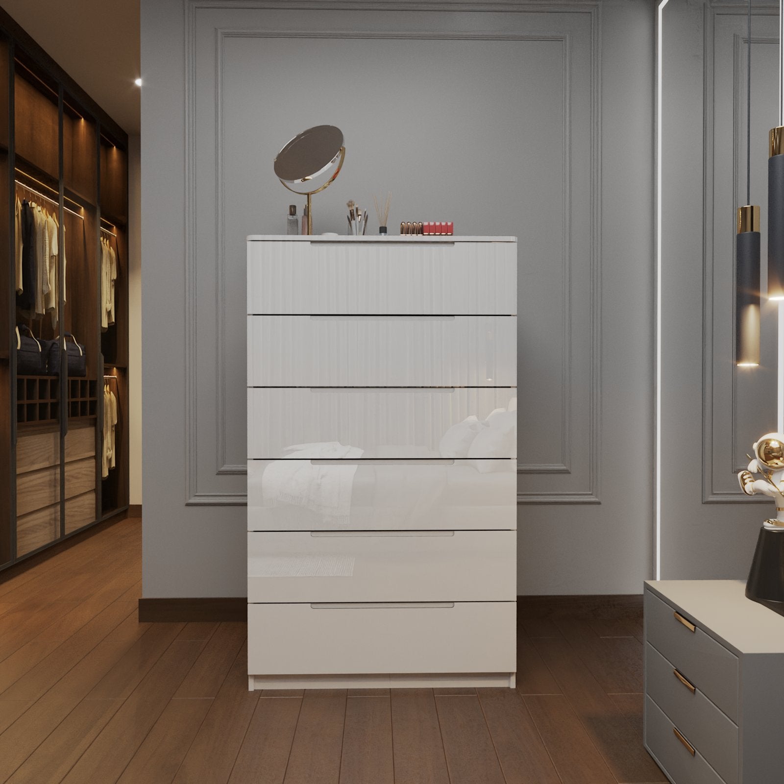 Add stylish and functional storage to your space with our 6-drawer high gloss chest. The deep drawers provide ample space for all your belongings, while the sleek design adds a modern touch to any room. Available in white, grey, and black for a customizable look.